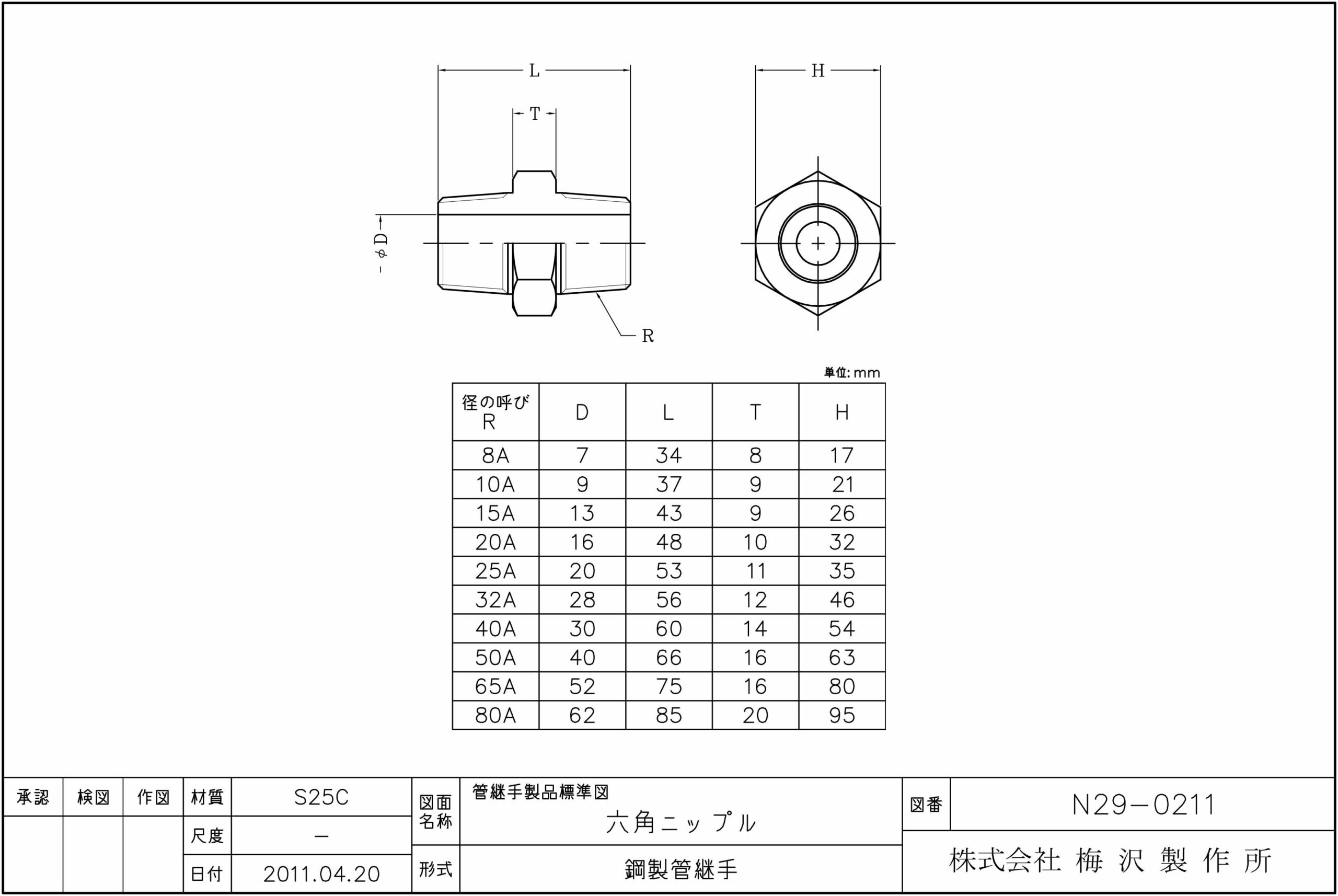 6角ニップル